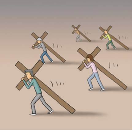 原来每个人所背负的都不仅仅是负担,也是自己将来可以依靠的强大的力量;当你觉得自己可以放纵一下的时候可要注意,你所背负的十字架可能正在慢慢变短……