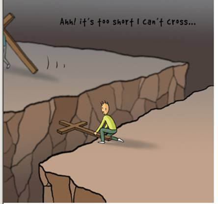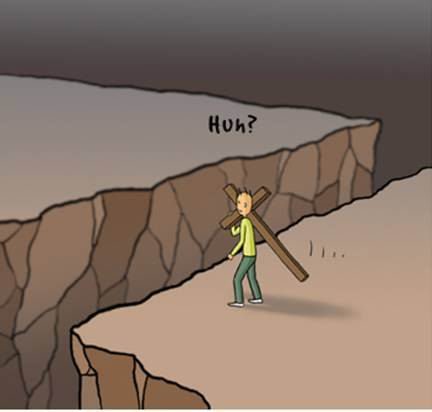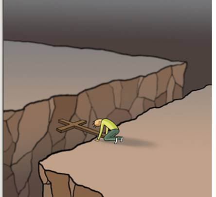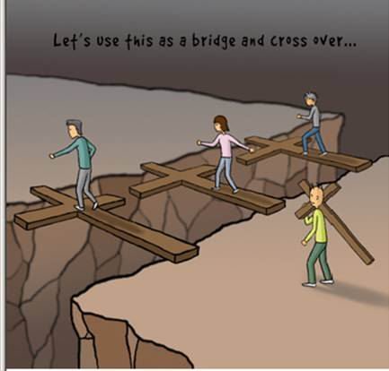 这时其它人跟上来了,原来每个人背负的十字架可以刚好搭在沟上,借助它可以安全度过沟壑