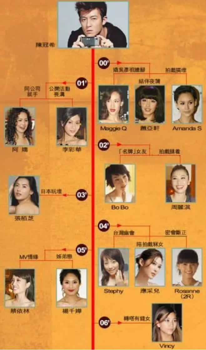 随之而来的,还有身边走马灯似快速更换的女友。刚入行那年他就常常被媒体拍到中午还在和 Maggie Q 约会吃饭,“撬吴彦祖墙角”,晚上就和萧亚轩同游兰桂坊,“结伴夜蒲”。