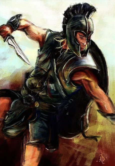 金庸第一部小说《书剑恩仇录》里,主角陈家洛第一次用兵器,是一个盾牌,盾牌上九枚明晃晃的尖利倒钩,可以防守,可以锁拿对手兵器。