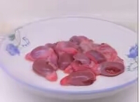 妈妈端着这么一小盆蛋蛋,在水里冲一冲,用剪刀去掉“骚筋”(大概是精索?),然后用菜刀在边缘轻轻地、浅浅地割一道口子,立即下油锅煎炸。