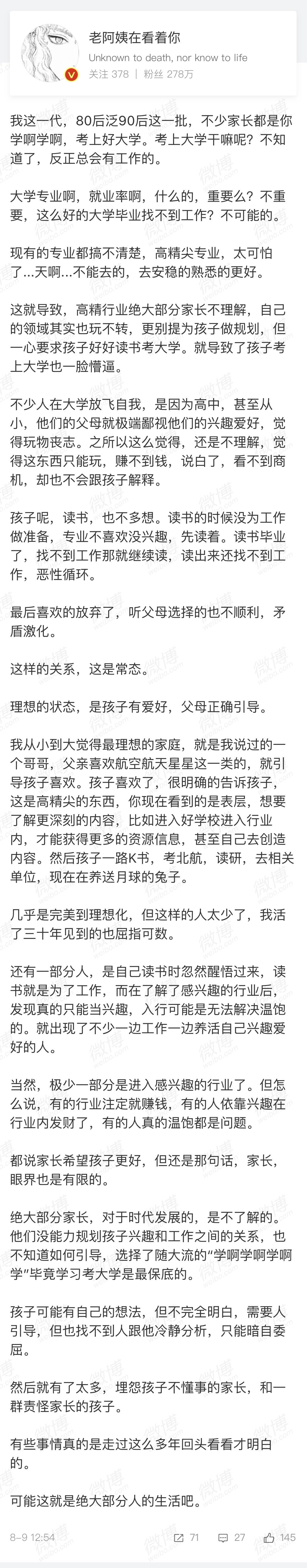 原帖由 田原 于 2019-8-12 08:53 发表 作者还是不理解现实的残酷,生存,生活的压力下,试问有几个是在自己喜欢的兴趣爱好的行业中工作。