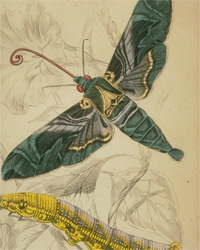 达尔文在种植和研究了一些本土兰花品种后发现,兰花的复杂花形正是为了吸引特殊品种的昆虫来为自己授粉。这些昆虫的外形都与某一亚种的兰花非常匹配。这就如同加拉帕戈斯雀的鸟喙,每种形态都与特定的食物来源相适应。以伯利恒兰为例,这种花的花蜜存储在30厘米深花朵底部。当达尔文看到花的结构时,便预测有一种与之匹配的动物存在。果然,在1903年,科学家发现長喙天蛾的长喙,特别适合伸到兰花的花蜜管底部。