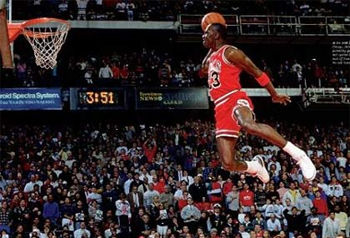 心理强硬度是驱动力,身体素质和技术则是执行的根本。1989年5月7日,公牛首轮碰上了克利夫兰骑士,第五场比赛中,在比赛仅剩3秒,公牛落后1分的情况下,乔丹接球之后进过一系列的过人动作,用最简单的方式赢得了出手空间,并利用超强的滞空能力,在罚球线附近等防守球员落下去的时候,将球投出。101-100,乔丹绝杀骑士——这就是传说中的“The Shot”。 乔丹能成功地集身体素质、技术和心理强硬度一体,这也成就了他在“生死时刻”的高命中率。[详细]