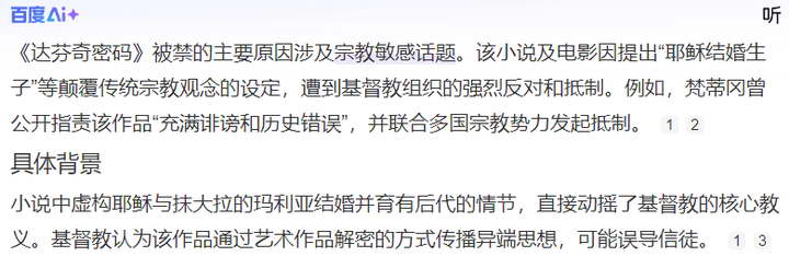 李连杰拍《霍元甲》,说霍元甲的后人全死了,遭到霍元甲后人的起诉。《达芬奇密码》说耶稣有后人,结果遭到了教皇的封杀。