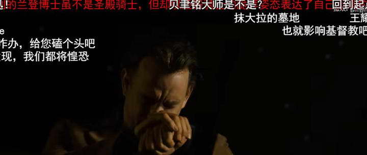 画面就是男主到处寻找,音乐由低到高,慢慢升起,充满了神圣感和仪式感,一波一波的往上推,逐渐高尚起来。当男主走到耶稣老婆埋葬位置的时候,音乐里增加教堂的合唱。