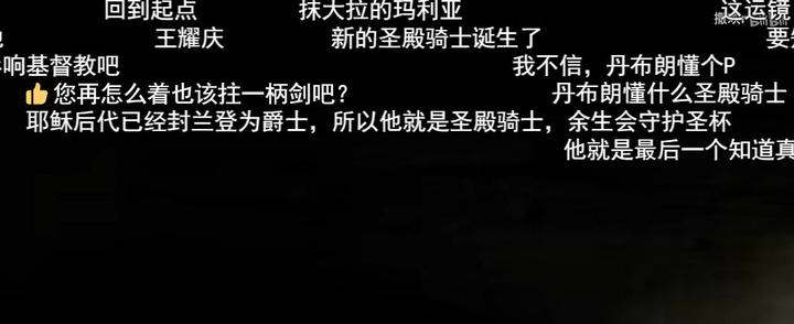 地面上,男主单膝跪下,双手按在剑柄上,表明他已经成为骑士,发誓保卫耶稣后人。