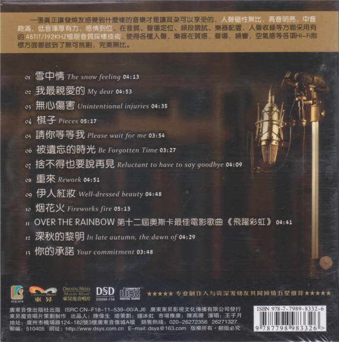 使得各种人声、乐器在音质、声场、频率、空气感等各项Hi-Fi指标方面都做到了无可挑剔,完美无比。