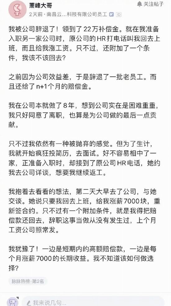 原帖由 Guest from 86.60.112.x 于 2021-11-9 11:19 发表 要是睡菊辞退我,补偿10w,就算给我1w一个月回来,我也不可能回来