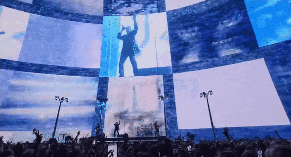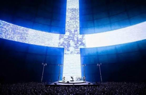 现场的装置音响由共计 167000 个扬声器组成,无缝集成于屏幕背后。当 U2 的主唱 Bono 在舞台上唱歌时,坐在台下的你会感觉好像他就在身边演唱。