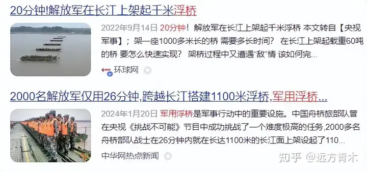 同样是采用预制件直接拼装,解放军在长江上架设一座长达千米的浮桥,不需要2个多月,仅需20分钟时间。