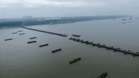 这种临时浮动码头其实就是个浮桥,而架设超大规模浮桥这种事我们每次大规模军演都会做。