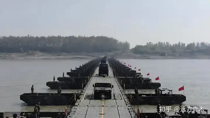 我们几乎是瞬间架设的这种浮桥,不仅特别长,而且载重高达60吨,可以轻易通行重卡以及坦克。