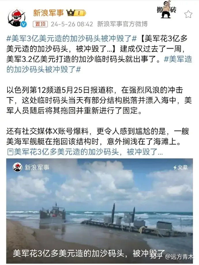 » 怎么看待美军 3 亿美元造的加沙码头被冲毁了?