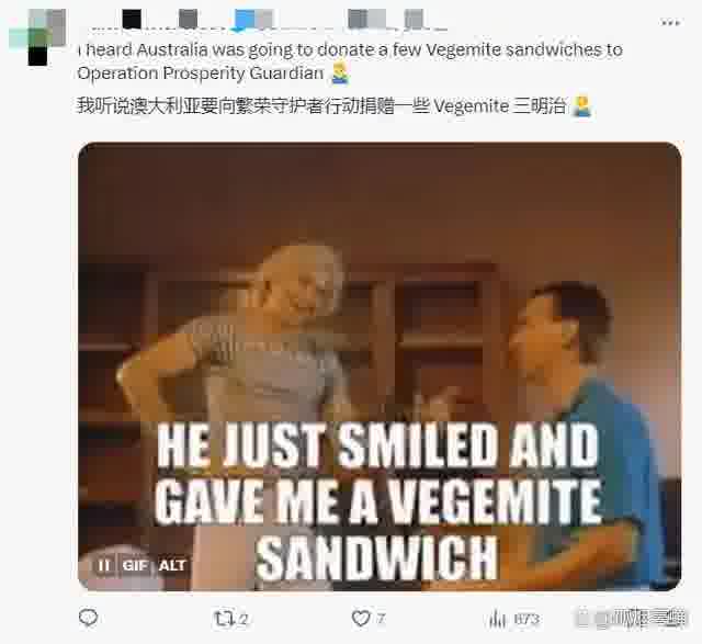 “你们怎么不提一嘴澳大利亚呢?我听说他们要为‘繁荣卫士行动’捐赠一点三明治来着呢。”