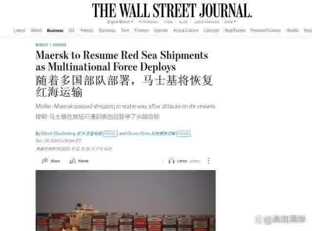 就在我出这期内容的过程中,我在美媒《华尔街时报》上还看到了一条新闻,说是丹麦航运巨头马士基集团已经计划恢复他们的红海航线了。尽管《华尔街时报》仍在试图带节奏,声称马士基之所以敢于重走红海航线,主要是拜“繁荣卫士行动”的功劳所赐,但实际情况大家都心知肚明。那些只不过是美国的舆论战宣传机器炮制出来,为美国领导下的那个也已离心离德的、所谓的“基于规则的国际秩序”挽尊的场面话罢了。