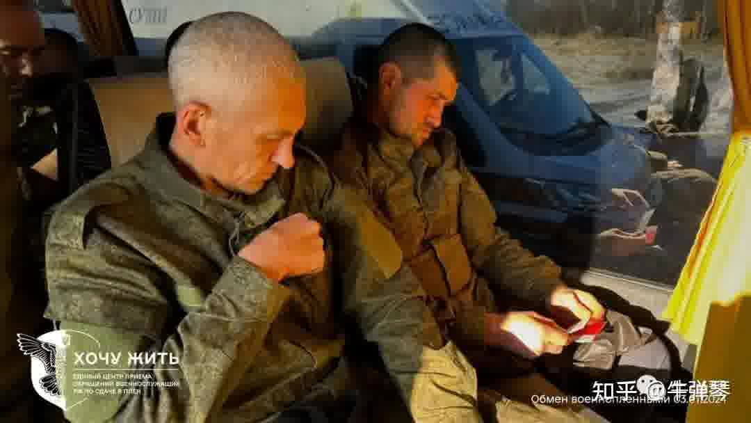 俄罗斯大巴接走了获释人员,随后他们被送上军用运输机,前往俄军医院,接受医疗和心理援助。