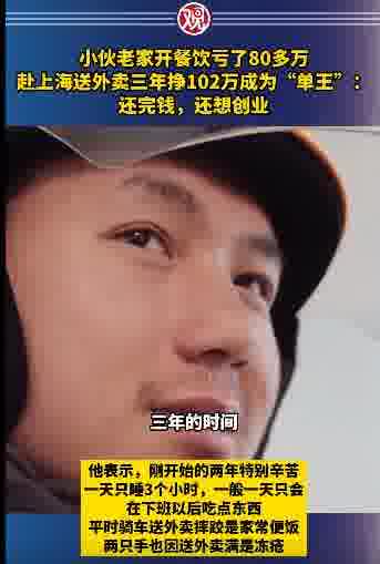 三年跑了 102 万的上海骑手可能是 “吃了夜草”。比如上海封城期间,有些外卖骑手铤而走险,获得超高 “跑腿费”。观察者网报道这位外卖员说 “1 天只睡 3 个小时”,打死我也不信。