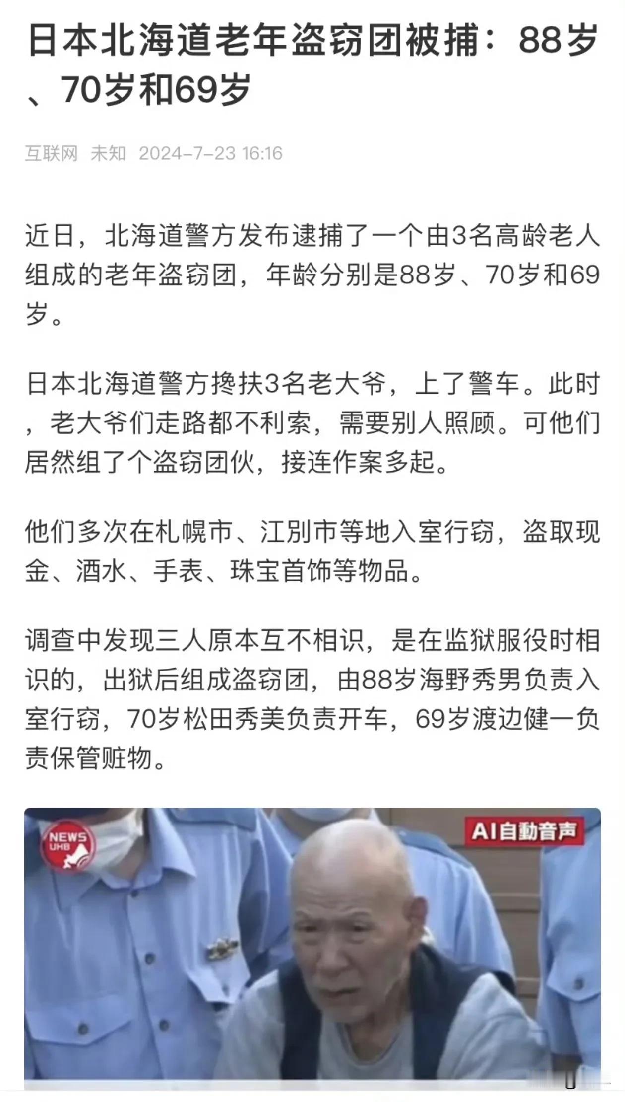 日本老人相约一块去吃牢饭