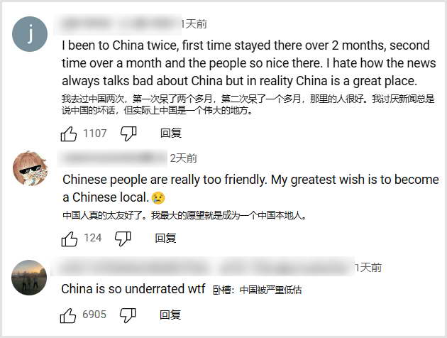 那些那波来中国自由行的外国游客,也曾分享真实见闻,自发宣传,但得到的都是质疑,很多网友认为那些要么是挑个例来骗来偷袭,要么是经过后期剪辑炮制出的流量密码。