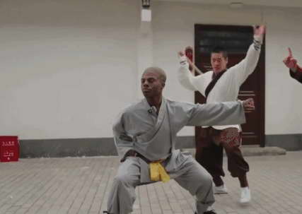 于是,想要求得真经的 “甲亢哥” 在这个院子里,学到了绳镖,几招少林招式和铁布衫,在学习铁布衫的时候,“ 甲亢哥 ” 一边连吃三棍,一边喊 Master!
