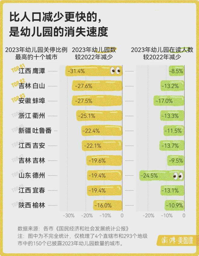 澎湃发布过一个数据,叫:比人口减少更快的,是幼儿园的消失速度。