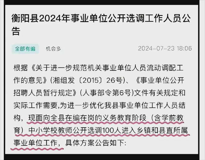 衡阳市衡阳县也宣布向其他事业单位分流教师。