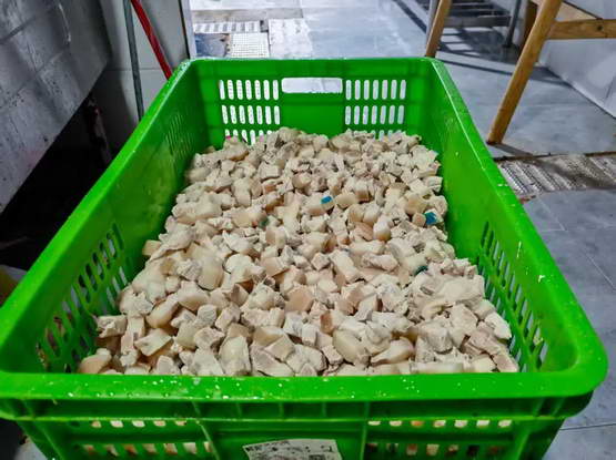 预制菜工厂中切好的五花肉原材料。凤凰网《风暴眼》摄
