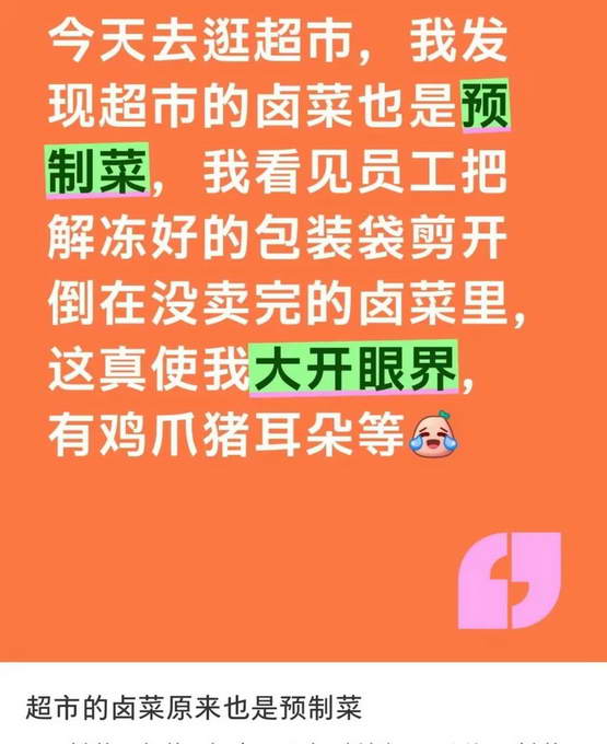 “吃个面都要被背刺,现在的预制菜真是防不胜防”,“外卖后厨科技与狠活”“太猖狂了,骑手曝光外卖商家”…… 在社交平台上看到这样的视频,如果你以为这是揭露外卖黑幕的吹哨人,就错了 —— 这更大概率是销售预制菜料理包的引流视频。