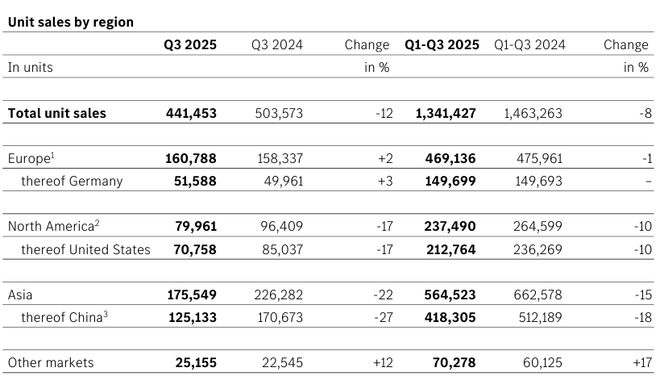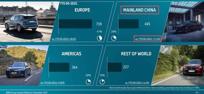 的确,宝马集团前九月整体交付 179.5 万辆,微增 2.4%,但中国区销量下滑 11.2%,拖了后腿。