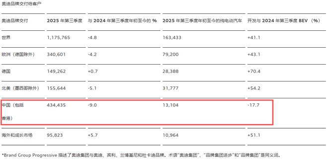 新能 源车方面,奥迪除了中国外,其他地区的电车交付增幅都在 4 成以上。