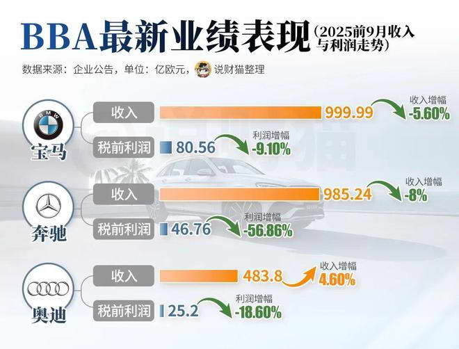 宝 马、奔驰收入利润双双下滑,奥迪收入虽然保持微增,但利润也扛不住。