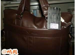 兰州理工大学技术工程学院给优秀学生发奖,奖品为皮包一个,阿玛尼商标显眼,学校校徽醒目,标价牌注明价值1280元。