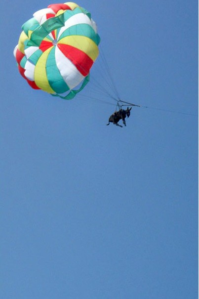 12. 一头驴被拴在一个降落伞上正在俄罗斯Golubitskaya海滩上空降落。这一幕吓坏了当时正在海滩上散步的人们。但其实这是当地一个公司利用这个“太空驴”做的广告。