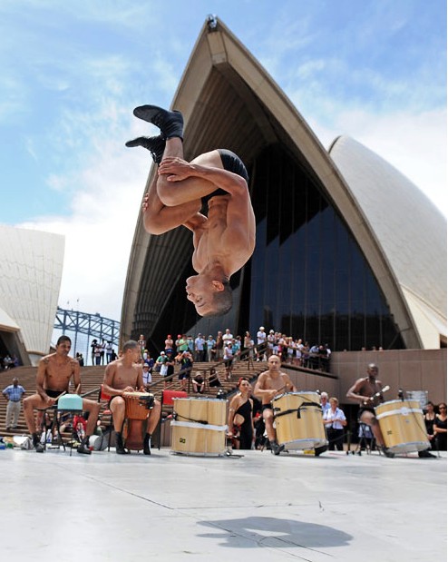 17. 巴西一个舞蹈团在悉尼大剧院前作表演。