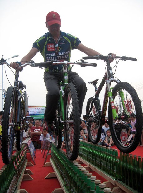 24. 这是一名骑自行车穿过酒瓶的另一名吉尼斯世界纪录创造者。