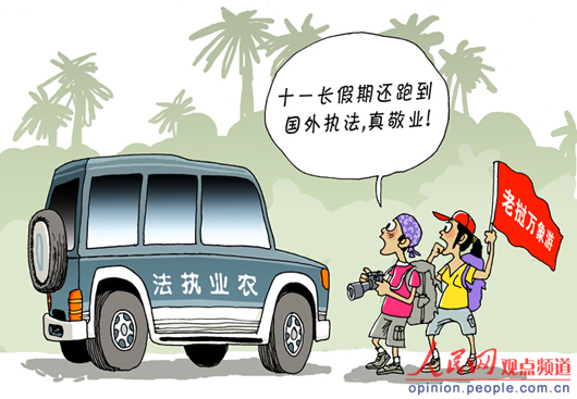据中国新闻网报道,10月4日,网友在老挝旅游时意外地发现了一辆牌照是云E84547的吉普车,其车身上喷有“农业执法”字样,网友惊呼国内的执法车已经走出了国门,并且放弃了休息日。8日下午,云南楚雄州委外宣办作出回应:驾驶该车辆的赵朝魏系楚雄州农业局执法支队支队长(正科),此次出境未向楚雄州农业局领导报告,属个人行为,公车私用。决定对赵朝魏先进行免职处理。