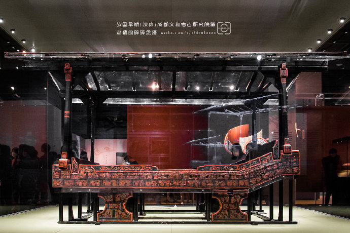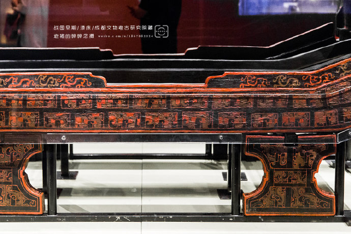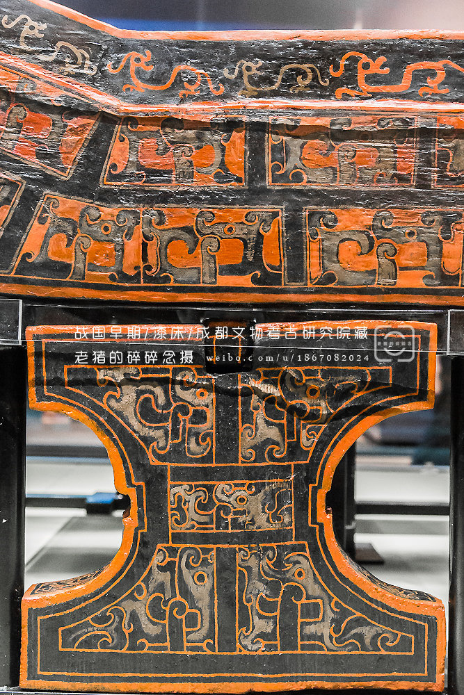 2000 多年前的漆床 战国早期 四川成都商业街战国船棺葬出土 成都文物考古研究院藏 #文物# 这是我国迄今为止发现的年代最早、结构最完整的漆床,全部构件皆由榫卯相接,床身上有两面坡悬山顶造型的床帐架,漆床长 3.2 米,宽 1.5 米,高 1.8 米,纹饰色彩亮丽。