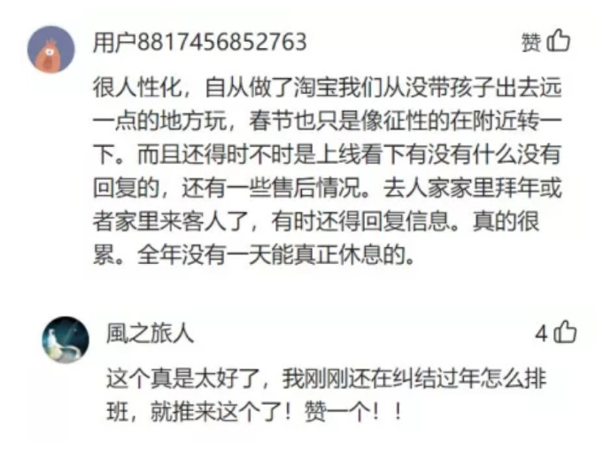 曾经中国最卷的电商行业,终于有人站出来提倡工作与生活的平衡了。大星看了一下商户们的反应: