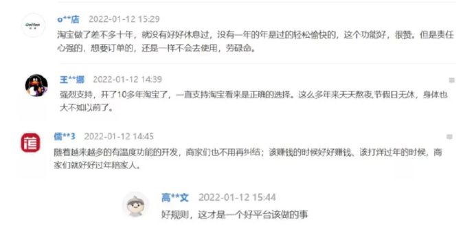 大星问了问淘宝的朋友,他们说为了上线一键打烊功能,他们调研了 10 万个商户,注意到了以往被忽视的需求。比如有的商家过年想休息,但消费者不认同容易产生纠纷;又比如有的商家过完年才发货,但平台没有规则和信息明确的情况下,容易判定商户发货间隔太久,直接降权。