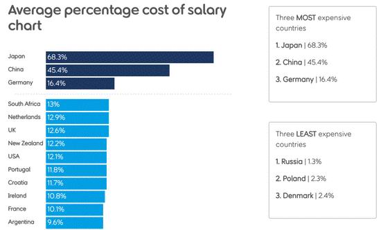 部分国家平均丧葬费用占个人年薪比例.|.图片来自:sunlife.co.uk
