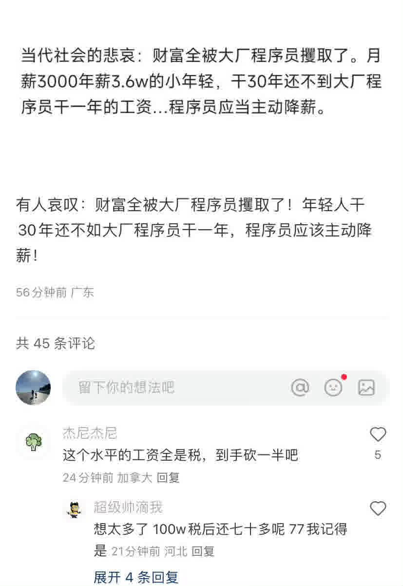 要是连这样的 “靠个人努力都能争取到” 的岗位,都嫉妒,都想着让人家减薪自己才高兴。