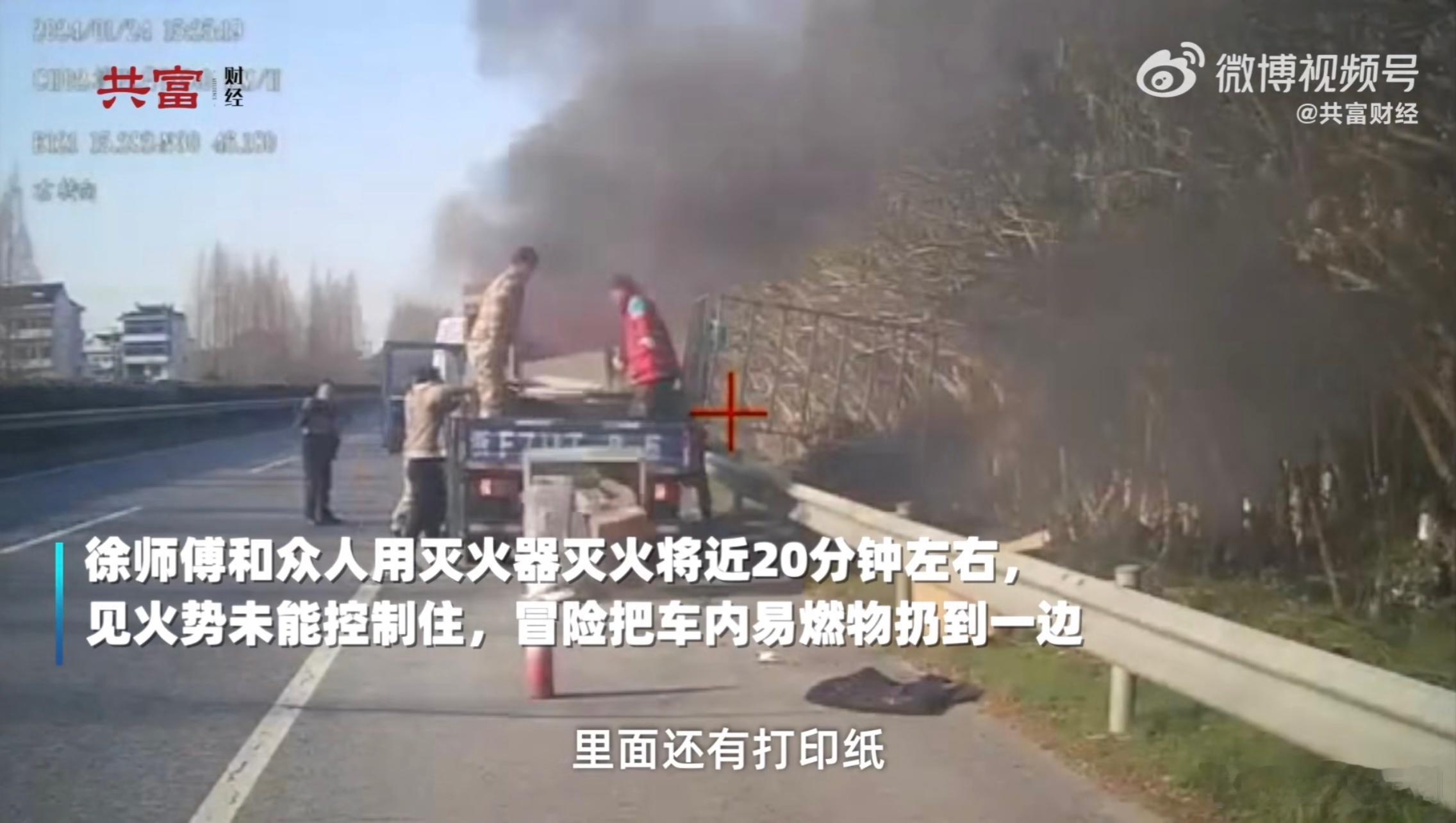 #大叔高速救火20分钟后默默离开#没有从天而降的神明,只有挺身而出的凡人,能在这种情况下冲上去救火真的非常勇敢,大叔好样的,这就是中国人与生俱来的温和善良。