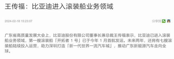 前段时间,世超看到一条消息,说是比亚迪要进军滚装船了。