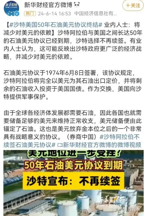 但几天后中国官方媒体出场了,对此事进行了盖棺定论,确认持续50年的石油美元协议确实终结了,沙特确实选择了不再续签。