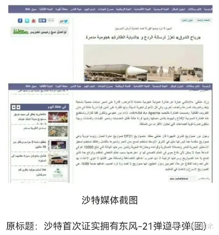 于是如今的沙特已经成功从中国进口了东风21导弹,这个消息已经在沙特国防部新闻发布会上,由沙特官方进行了宣布。