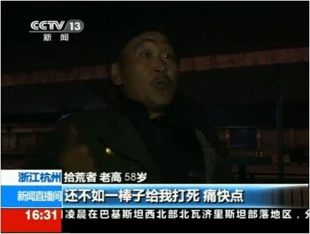 ——【央视报道,流浪在杭州的58岁东北拾荒者老高谈救助站,称不愿回去。而对于81岁的老周来说,天桥就是自己的家。】