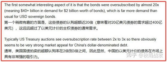 那现在呢?中国竟然向全世界借了20亿美元,而且啥抵押物都没有,就给一张凭证,结果超20倍的认购意向,抢疯了!尽管主场在沙特,可沙特自己才抢到了8%,也就1.6亿美元,不知道的人还以为中东也缺美元呢。