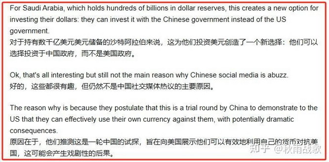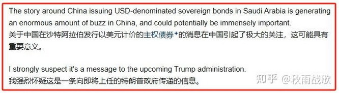 这件事给沙特一个重大启示:除了买美债,还可以买中国以美元发行的主权债,也能拿到相同的利息。