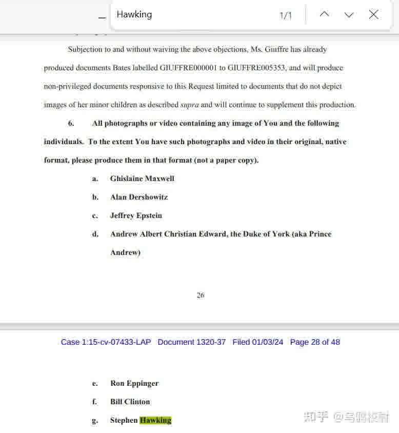 可以说,霍金不是这份解密文件的什么主要人物,而关于“参与未成年性交易派对”的指控,对他有利和不利的有效证据,目前还都不足,真要将霍金“定罪”还有待更多证据的出现。